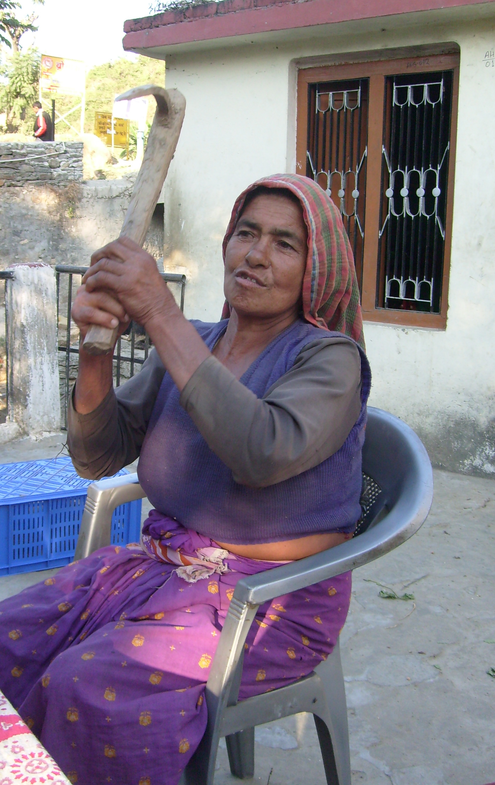 Abbaldey married at age 15, and is now 56. She has two sons and one daughter. Her two daughters-in-law assist her in her fields. Though her fields are spread-out, overall, she has more than 50 nali to farm. The family also owns a bull, a buffalo, a cow and a calf.